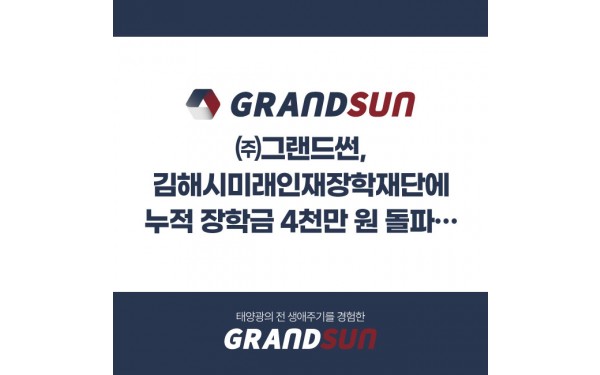 ㈜그랜드썬, 김해시 미래인재장학재단에 장학기금 기탁누적 장학금 4천만 원 돌파…지역 인재 …