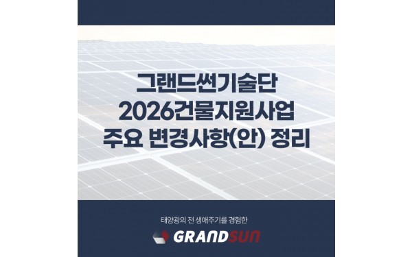‘빠르게 변화하는 에너지 정책’ 그랜드썬기술단, 2026년 건물지원사업 업계 주목